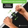Die Teleskopstangen sind durch die Drehfixierung schnell aufgebaut und halten auch höheren Belastungen stand.